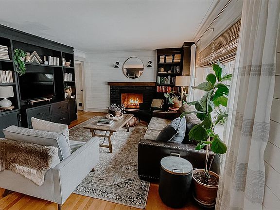 This adorable home offers so much charm! Living room has a wood burning fireplace, custom built entertainment center with built-ins. Kitchen is tastefully done with shiplap, some open cabinetry, stainless appliances, new refrigerator and banquette benches in dining nook. Lower level has great room with custom built in entertainment center, new electric fireplace, custom built in desk/office area, kitchenette, bath and laundry room. Beautiful park like back yard with patio! Cinch Home Warranty provided by sellers.