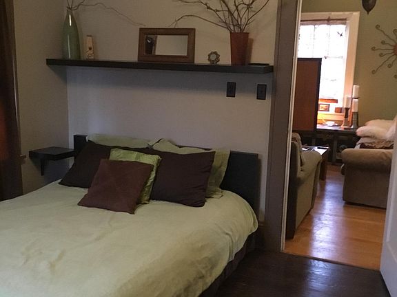 Cozy 1926 craftsman for short term/ temporary rent that is fully furnished and has all amenities to stay awhile (kitchen fully equipped with cooking supplies, towels, bedding, iron, hairdryer) and has a rustically designed aesthetic. Great neighborhood within walking distance to New Seasons market, restaurants and shopping. Bus transit on same block. One bedroom upstairs and one bedroom on main floor that has 2 closets and a built in for extra storage. Sorry no cats. Utilities are included. Deposit and last month's rent due prior to move in. 300$ pet deposit. Smoking allowed outside only.