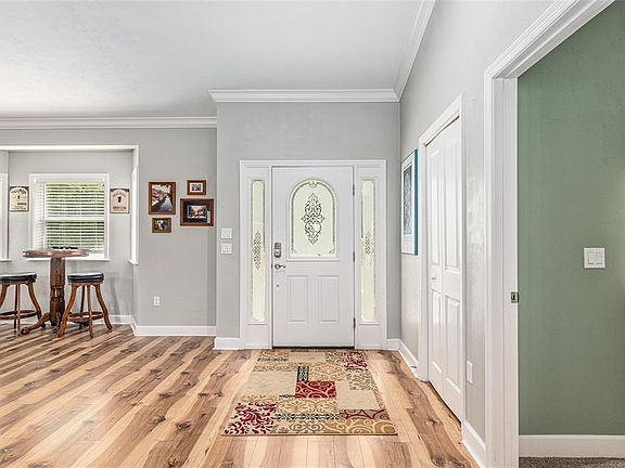 Under contract-accepting backup offers. Custom 2017 Brick Home on 1 Acre In-Town – Loaded with Upgrades! Welcome to this beautifully maintained 3-bedroom, 2-bath custom brick home located on a full acre in a prime in-town location with NO HOA! This nearly 2,300 square foot home offers an open layout with vaulted ceilings, crown molding, built-in speakers, and two cozy gas fireplaces—one in the living room and another in the spacious primary suite. The well-appointed kitchen features granite countertops, subway tile backsplash, stainless steel appliances, under-cabinet lights, sleek range hood, walk-in pantry and custom soft-close cabinetry. A separate formal dining room that includes a built-in glass cabinet with interior lighting and breakfast bar offer plenty of dining options. Vinyl plank flooring in main living areas, tile in kitchen and bathrooms and carpet in bedrooms. A dedicated inside laundry room offers extra convenience. Oversized primary bedroom with plenty of room for large furniture, a gas fireplace and handicap accessible bathroom with walk-in shower and a double sink vanity with granite. Enjoy low utility bills thanks to energy-efficient Isonene insulation, well and septic, and a durable metal roof. The 3-car garage provides ample storage, and there’s even a 20x30 RV pad with septic cleanout, security light, and gated access. Outside you will find a flagpole, brick mailbox, security lights and a security system. The home is whole-home generator-ready and has natural gas running to the home. Unwind on the expansive screened-in back porch, fully wired for a hot tub and TV—perfect for watching west-facing sunsets. Additional features include a fully fenced yard, irrigation system, and top-rated school zones. Conveniently located near I-75, shopping, dining, and hospitals. Pool table negotiable with sale. Don’t miss this rare combination of space, upgrades, and location!