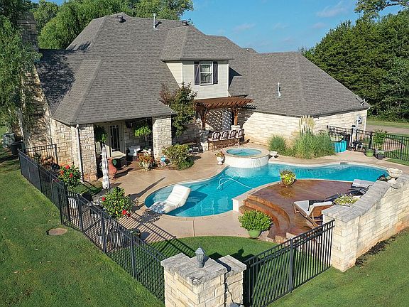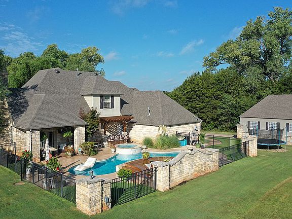 2-story all stone veneer house designed by an accomplished architect/builder. Includes a custom designed concrete swimming pool, outdoor kitchen, 3 car attached + 2 car detached internally finished garage/workshop.
