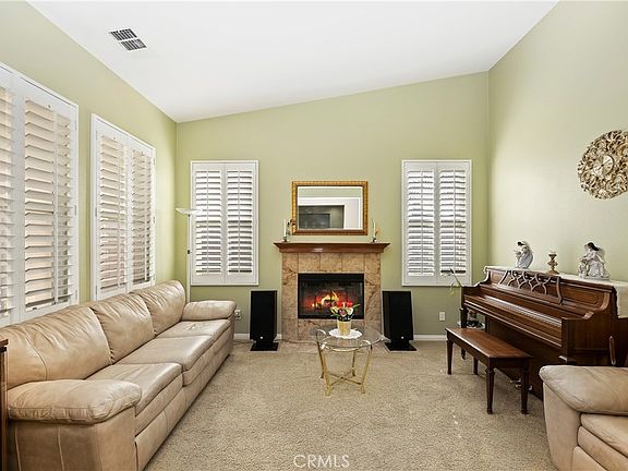 Nestled at the end of a cul de sac in the prestigious, gated Tournament Hills community is this charming, highly upgraded home that lives like a single story. Three of the four bedrooms, including the master bedroom, are on the main floor. Two full baths on the main floor, as well as an Office and Laundry Room. Guest bedroom, full bath and loft upstairs. Home features vaulted ceilings in most rooms and plantation shutters throughout. Inviting Living Room with fireplace. Light and bright kitchen and family room area with soaring ceilings make every day a joy to be home. Kitchen features a large island w/ granite counters & breakfast bar seating, SS Appliances and double oven. Family Room has a 2-sided fireplace and access to back yard. Dining room off of the kitchen makes it easy to entertain. Large Master Bedroom has vaulted ceilings and a large walk-in closet. Luxurious Master Bath has separate sink areas and a jetted tub. Ceiling fans in all bedrooms and family room. Large & Private back yard could easily accommodate a pool and has an alumawood patio cover, is fully landscaped and has a number of fruit trees. Large 3-Car Garage. Charming location featuring a walkway across the street leading to the lake and stream area. This one has it all! Come and take a look today before it's gone!