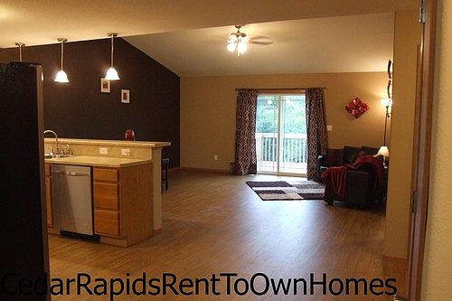 SUMMER SPECIAL REDUCED RENT! JUST $1395 when you start your rent to own in August!!CHECK THIS OUT 3625 37th Ave, SW Unit C#1) Stop on by!#2) Start packing!#3) Move in and ENJOY!!View pix and details at:www.CedarRapidsRentToOwnHomes.comSpecial Features -Open Concept with vaulted ceilings-Updated throughout-Soft neutral colors with splash of espresso-Lower level family room with walk out-Stainless steel energy efficient appliances-Desirable family neighborhood This remodeled condo with impressive detail is now available! Drive into the quiet cul-de-sac, walk up to the end condo and step into this spacious ranch condo, over 2100 sq ft finished. Vaulted ceilings and open concept great for entertaining and family time! Beautiful open oak kitchen with high top breakfast bar. Stainless steel energy efficient kitchen appliances included (stove, frig with ice/water, dishwasher and microwave). Adorned with a back splash tiled in glass and accented with pendant and under cabinet lighting. Oak cabinetry includes lots of drawers and double lazy Susans. Lots of detail in the design with open areas and bull nose corners and trim. All new brushed nickel and oil rubbed bronze lighting and hardware throughout. Painted in soft warm sand stone colors with an occasional splash of espresso. These inviting colors will complement any decor! 3 large bedrooms with ample closet space and organizers. Master suite has huge walk in closet and nicely appointed bath. Lower level boasts a sizable family room with walk out on to patio. This level also has a large bedroom and walk in closet plus, another full bath! Soooo... this means 3 baths available for you and your family. Main level laundry room includes washer and dryer as well as additional storage closet. 2 stall garage walks right into main level for your convenience. No neighbors behind. This cul-de-sac is filled with friendly neighbors. Schools and shopping are nearby. Easy access to Hwy 30 and Interstate 380. If you like to shop and/or eat out, Westdale Mall, Lindale Mall and several restaurants are just minutes away.This awesome home is available to rent to own for only $1395 per month (when you start your rent to own in August), plus option fee which is 100% applied to the purchase, if purchased within 12 months. OR can be purchased on contract (seller financing) OR financed at the lender of your choice. RENT CREDITS AVAILABLE. Ask how you can have an additional $1200 credited to the purchase.This can be your new home for only $179,900.00Details: Total finished sq. ft is: approx. 2119 Built: 2005 Taxes: Approx $3010HOA fees $115 monthly (included in rent)For a personal tour, please call or text: 319-350-4072 or email jmfjaf@aol.com.If this home is not "just what you are looking for", please call or text to find out about more custom homes available in the Cedar Rapids/Marion area.