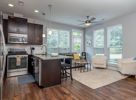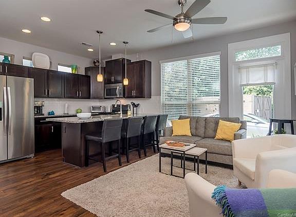 Like-new end-unit condo in Charlotte's Arts District, NoDa! Walkable to shops, restaurants, park & farmer's market, + walkable to new Lynx Light Rail station for easy transportation! Wood floors thru main level & stairs, high ceilings, extra windows & lots of sunlight! Gorgeous open kitchen w/ granite, SS & tile backsplash. Two master suites, both w/ granite dual vanities & ceramic tile floor/shower surrounds. 3rd fl master has soaring ceiling & WIC. Rear enclosed patio, great for entertaining!