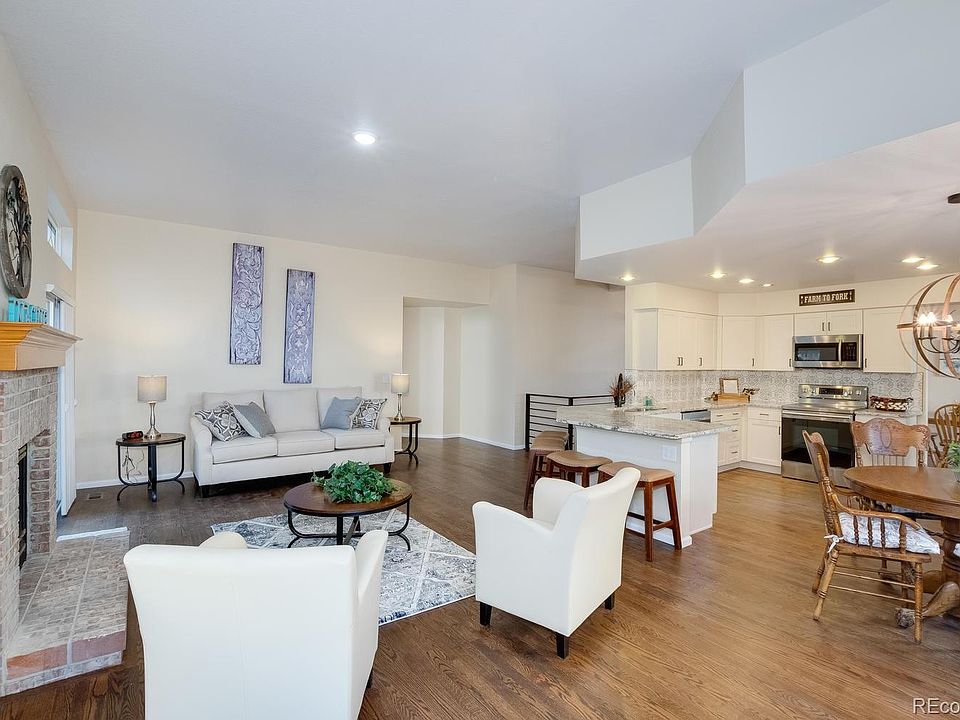 GORGEOUS REMODELED RANCH HOME, OPEN CONCEPT W/BRAND NEW CREAM SHAKER (SOFT CLOSE) KITCHEN CABINETS & BATH VANITIES W/BRONZE FIXTURES, GRANITE COUNTERTOPS, ELEGANT BACKSPLASH, STAINLESS APPLIANCES. HUGE PENINSULA FOR ADDITIONAL SEATING, FORMAL DINING ROOM. PERFECT FOR LOTS OF ENTERTAINING. 6 PANEL DOORS THROUGHOUT W/BRONZE FIXTURES, NEW BRONZE LIGHT FIXTURES, NEWER WINDOWS THROUGHOUT. NEW PAINT INSIDE AND OUT. FABULOUS FRONT AND BACK PORCH FOR LOUNGING. NEW CARPET, REFINISHED HARDWOODS, MODERN RAILING, LOW MAINTENANCE FRONT AND BACK YARD. REMODELED BATHROOMS W/ NEW TILE, BRONZE SHOWER ENCLOSURES. 2 MASTER BEDROOMS. DEN ON MAIN FLOOR AS WELL. SOLAR IS FABULOUS. TOTAL XCEL BILL APPROX 78/MONTH. TESLA SOLAR IS ON A LEASE OF ONLY $49/MONTH . 4 HUGE REC CTRS TO CHOOSE FROM THROUGHOUT HIGHLANDS RANCH. SWIMMING POOLS, WORK OUT AREAS, TENNIS COURTS, RAQUET BALL, BASKETBALL, SO MUCH TOO MENTION. WALKING TRAILS EVERYWHERE. YOU WILL NEVER BE BORED. FANTASTIC!!! ALL BACK PATIO FURNITURE INCLUDED; WROUGHT IRON TABLE N 5 CHAIRS, BRAND NEW PROPANE FIRE PIT, SOFA AND 2 CHAIRS. GORGEOUS!!! Seeking approval from HRCA to put top lattice to fence to promote privacy.