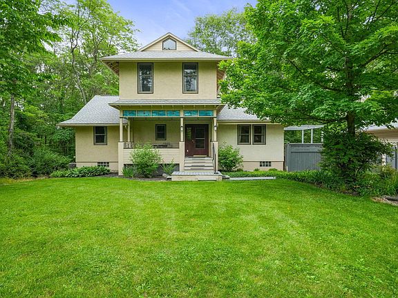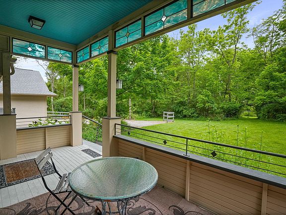 Experience this beautiful 5.73-acre property, maintained by its original owner. Enjoy charming stained glass and ample natural light through large windows with new screens. The first floor features 2 bdrms, a full bath, a gorgeous living room with wood beams, & a built-in wall fireplace separating the dining area. The elegant kitchen offers large cabinets, & a built-in pantry. Enjoy extra closet storage & access to a side deck from the dining room. Upstairs, a sunlit loft overlooks the backyard with additional access to the roof, the laundry is conveniently located nearby. The primary bedroom offers a full en-suite bath, a walk-in closet, & additional storage. The partially finished lower level includes a full bath & walk-out to a screened porch & a backyard that backs to Blues Creek!