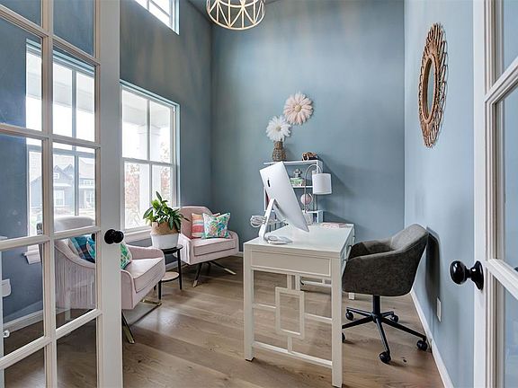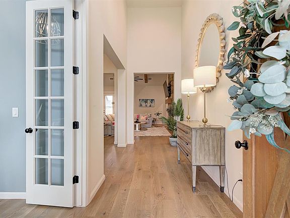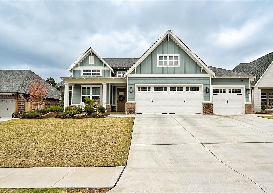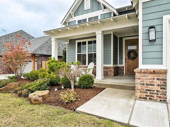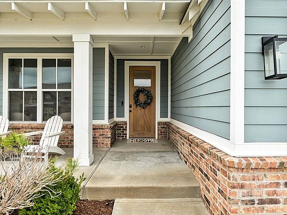 This beautiful Luxury 3 bedroom Coastal Farmhouse comes with a Study that has 12-foot ceilings and clerestory windows to let in the natural light. The large open living room has a soaring vaulted ceiling with a large aviator ceiling fan, Oklahoma inspired scissortail cross wood beams, and a large stacked stone floor to ceiling fireplace with built-in cabinets on both sides. The kitchen has a large and long island with a breakfast bar that is perfect for entertaining or holidays, a huge walk-in pantry, and a breakfast dining area that can also be used for a reading nook with morning coffee if you choose. The Formal Dining seats 6-8 and has a beautiful built-in buffet/sideboard that is perfect for holiday entertaining, or hosting game nights. The Primary Suite has a large en-suite bath with separate vanities and an added make-up vanity for your daily routine. The Primary Suite also has a great walk-in closet with ample storage for seasonal clothes and shoes. The home also features custom window shades a covered patio and 3 car garage.
