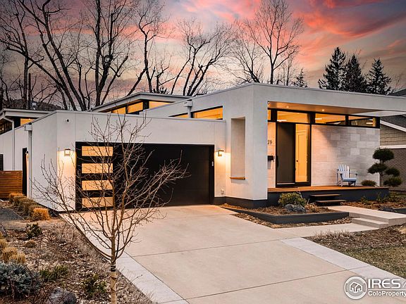 A modern masterpiece awaits in this striking home designed and built by Rosewood Construction and Studio3Fold. An architecturally alluring exterior w/ a front deck surrounded by landscaping crafts a stunning first impression. Residents are welcomed into an open-concept layout drenched in natural light from thoughtfully placed clerestory windows throughout. Soaring 13' ceilings draw eyes upward as harmonious flooring flows underfoot, from a spacious living and dining area to a sleek kitchen. The home chef's workspace showcases all-white cabinetry, high-end appliances and a vast center island w/ seating. Extend at-home soirees outdoors through sliding glass doors to a private backyard flaunting a deck and patio entertaining area. Tranquil serenity abounds in a pristine main-level primary suite boasting deck access and a five-piece bath w/ radiant in-floor heat. Poised within the coveted Melody Heights neighborhood in Boulder, residents enjoy access to three parks and multiple trails.