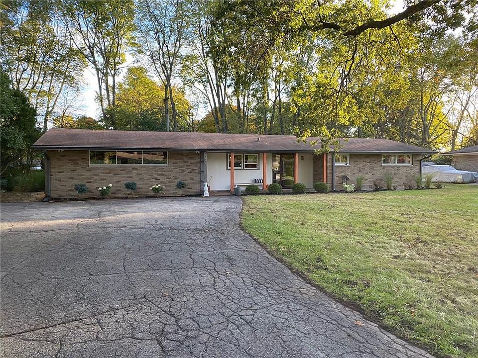 Timing Is Everything!! This well appointed mid-century brick ranch is in a fantastic location with a number of updates and has been professionally landscaped, in an established neighborhood, with an open floorplan offering an abundance of natural light & the large private lot makes this home one to be desired! The home has been recently painted. The updated kitchen w/stainless appliances and refinished parquet hardwood floors include painted cabinets & new hardware. This leads into the bright & open sun room. The great room parquet hardwoods have also been refinished with a gas log fireplace. Although this home is technically considered a two-bedroom, the basement has a large finished family room area with an extra bonus room & full bath.