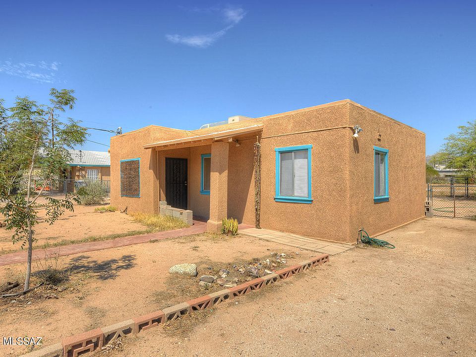 Fantastic opportunity to own a single family masonry home on a huge .43 acre, approx. 60' x 300', R-2 zoned lot. This 822 sf home features two bedrooms/one bathroom & is perfect for someone looking for a smaller home on a large lot. Kitchen offers a gas cooktop, two bin sink, pantry, black appliances - and the refrigerator conveys. Separate dining area is adjacent to the kitchen. Carpeting and laminate flooring throughout. Plenty of room on the lot for a huge workshop, large RVs, boats, work trucks and maybe even 3 or 4 duplexes. (Chain link fence will need to be removed to drive onto rear of the property.) Large outdoor storage room has laundry hookups. Awesome central Tucson location - close to the University of Arizona, Brandi Fenton Park, Monsoon Chocolates, shopping & restaurants.