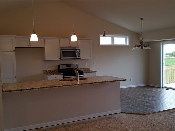New construction in Beloit. 1510 sq. ft. open concept great room ranch. Kitchen with breakfast bar and stainless range, dishwasher and micro. Master bedroom with walk-in closet and private bath. Full basement. HOA $150, per year. Completion 8/15/2016.
