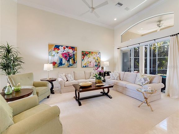 Your elegant tropical oasis awaits in this expansive, meticulously appointed 3BR estate in esteemed Queens Harbour, an intimate community behind the gates of Bay Isles. Come home to a beautifully landscaped property, where a courtyard-style entry with glass double-doors and a decorative arched window invite you inside to a stunning ambiance looking straight to the lanai/pool and lake beyond, bringing the outdoors into this stylish space. Adorned with large tile flooring, new carpet, an abundance of windows and transoms, soaring ceilings, recessed lighting, neutral finishes and painstaking architectural details throughout, the split plan design offers an added level of privacy to owners and guests or comfortable family living. Enjoy access to the gorgeous pool area from the living room, family and kitchen, creating an ideal locale for entertaining with ease and savoring the peaceful, relaxing setting overlooking a tranquil lake. Opening to the living room and adjacent to the formal dining room, the gourmet kitchen boasts granite countertops, breakfast bar, large center island, custom backsplash with alternating surface depth, an eat-in area and top-quality GE appliances. Follow through an arched double-door entry to the spacious master suite, which is bathed by an abundance of natural light with full view of the pool to the lake and enhanced by the master bath with marble, double vanity and spa tub. Additional features include a tile roof, 2-car garage, newer 2-zone A/C and water heater, and utility room.