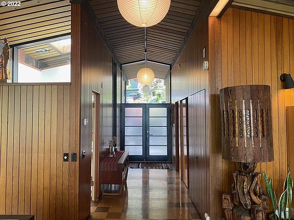 Well maintained Mid Century Modern home on quiet street. Hm designed by Jim Morton in 1954. Features Vaulted Ceilings, Fireplaces, Skylights & Views thru floor-to-ceiling Windows. French Doors lead to large Deck, perfect for entertaining. Main level Primary Bedroom Suite has Office, Bath & Deck. Kitchen has Pantry, Gas Stove, & BBAR. Downstairs has Family Rm, Utility Rm w/Bath, 3 Bedrooms w/possible 4th. New Roof & Ext Paint. Easy maintenance Yard with lots of wildlife to watch. SQFT PCR.