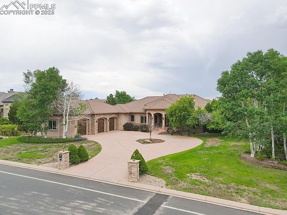 This sprawling home spans 6900 sq ft showcasing stunning views of Garden of the Gods and Pikes Peak from the front and from the back Kissing Camels golf course. The main level has 2 en suite bedrooms, an office, and 2.5 baths, while the kitchen stands as a chef's paradise with high-end appliances, granite countertops, and alder and pine cabinets, it has a large pantry and a separate china pantry that passes through to the formal dining room. The master suite impresses with an expansive his and her closet and a lavish 5-piece master bath featuring his and hers sink areas. In the walkout basement, where endless possibilities unfold, there are 2 en suite bedrooms, for ultimate privacy and comfort. A spacious family room and game room area invites relaxation around the fireplace, while a versatile recreation area beckons to be transformed into a gym or entertainment space. There is a lap pool in the basement that can be finished or can stay covered and used as a workout area. Wine enthusiasts will appreciate the dedicated wine room, that can also be used as food storage or a fire safe, while unfinished space presents the opportunity to create additional bedrooms and bathroom, a media room or personalized retreat. New furnaces, AC units, humidifiers and thermostats. Outside, a covered deck provides a serene oasis for outdoor gatherings, while 3 fireplaces throughout the home create a warm and inviting ambiance. With a 3-car garage and meticulous craftsmanship evident in every detail, this residence offers unparalleled luxury living.