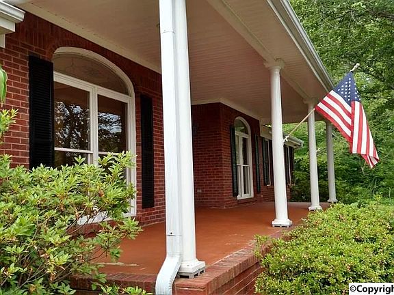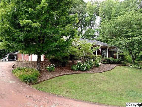 For more information call Connie 256-302-2373 All brick 4BR/3.5BA home on treed double lot, w/seasonal lake view offers one level open floor plan, 3580+/-sf, fenced back yard w/patio, screened porch & detached workshop w/half bath. Features foyer, master suite w/sitting area & his & her walk-ins, great w/gas log fp, dining, brkfast w/bay window, study, large laundry, open kit, hdwd floors, smooth 9ft ceilings, trey ceiling, crown molding, recessed lights, covered front porch, landscaping & 2 car side entry garage. Close to Lake Guntersville, boat launch, parks, schools & shopping.