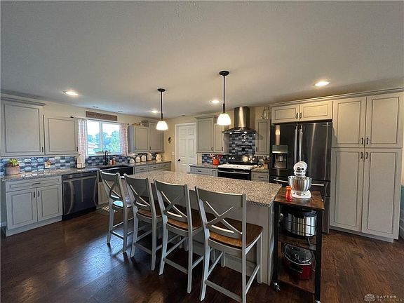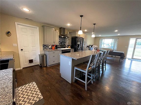 Don't miss out on this fully remodeled ranch in Beavercreek schools! With 3 bedrooms, 2 full bathrooms, and a bonus/flex space perfect for a home office or formal dining room, you won't find anything else like this home on the market! Putting this home over the top are the open concept living spaces, beautiful outdoor patio area, and STUNNING kitchen. The large, fenced in yard is perfect for gardening or entertaining, and a 10x12 concrete pad was poured in 2019 making the perfect space for a shed. Kitchen remodeled in 2020 with deep sink, pot filler, granite countertops and 8 ft island with electric/outlets in island. Kitchen appliances (Samsung!) convey. Bathrooms remodeled 2020, all carpet 2020, heat pump/AC 2018, new roof, all new windows and patio door 2019, water softener 2021, back patio 2019, all ceiling fans 2020. All new flooring laid 2020- contractor is coming out to fix uneven spots. Ring doorbell conveys. Fireplace inspected in 2016- owners use it, but it is not warranted.