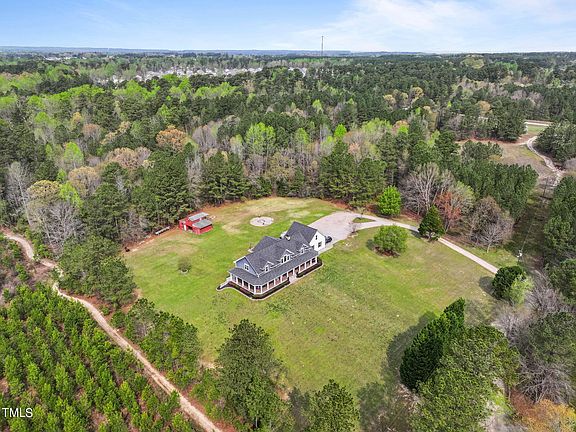Gorgeous custom modern farmhouse on 6.3 unrestricted acres in Wake Forest! Unparalleled craftsmanship, quality and attention to every detail! Using only the finest materials available, the owner's vision is evident at every turn. Vaulted and Beamed soaring ceilings, reclaimed random width/long length wood flooring, solid hardwood doors and real wood custom ship lap throughout. True Gourmet kitchen featuring custom 42'' maple cabinetry (dovetail/self-closing) with pull outs to include spice rack, matt finish black granite, 36'' custom-built range hood, gas stove, GE double ovens & dishwasher, double acrylic farm sink w/drain board, huge center island and massive walk-in pantry. 1st floor Primary Suite with custom dream bath boasting huge custom step-in tile shower. Additional 1st floor guest/In-Law bedroom w/adjacent custom bath. Huge living room with wood burning fireplace, custom built-ins and sweeping open staircase complete the 1st floor. The 2nd floor greets you with an open retreat area with stunning views, an additional bedroom with custom private bath and loft as well as a bonus room currently being used as a 4th bedroom and office combo. The exterior of this rare gem features a true (3) side wrap around front porch, a (17 x 17) rear porch, an oversized (3) car garage with a walk-up (ready to finish/30 x 18) space above with (2) 20 amp breakers in place. An additional 19 x 19 paver patio and original horse barn complete the picture. The property is approximately 60% wooded and backs/sides to a (21) acre designated Forestry property. This is an extremely rare combination of location, private setting & dream home. Endless possibilities await you just minutes from all of the most convenient attractions and amenities that Wale Forest and Raleigh have to offer! Please click on the 3D virtual tour to experience first hand.