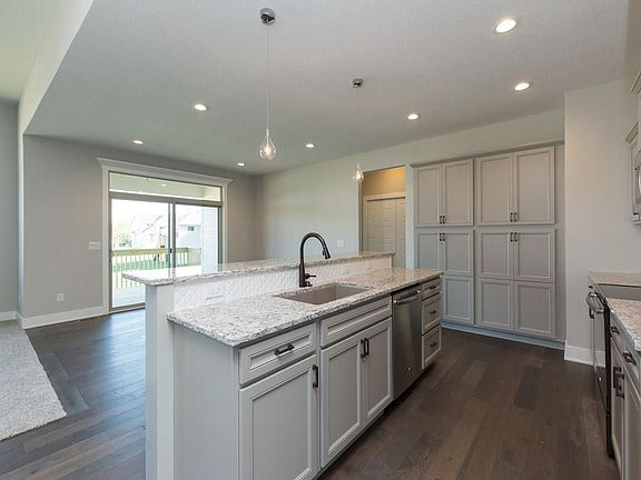 Popular ranch style Allendale plan with 1,800 sqft plus finished walkout basement and 3car garage. Open floor plan, upgrades throughout. Finished bsmt w/wet bar is great for entertaining and also has 4th bdrm and bathrm. Kitchen has gorgeous hardwood flooring, island w/ raised breakfast bar, subway tile backsplash, quartz counters, pantry and farmhouse sink. Custom built-ins on both sides of fireplace. Master suite features huge walk-in closet, tiled shower, double vanity. LP siding and stone exterior. You'll love friendly Angel Park neighborhood, near HyVee, Waukee schls, walking trails. Jerry's Homes has proudly built homes since 1957 and offers builders warranty and $1800 towards closing costs w/pref lender Wells Fargo.