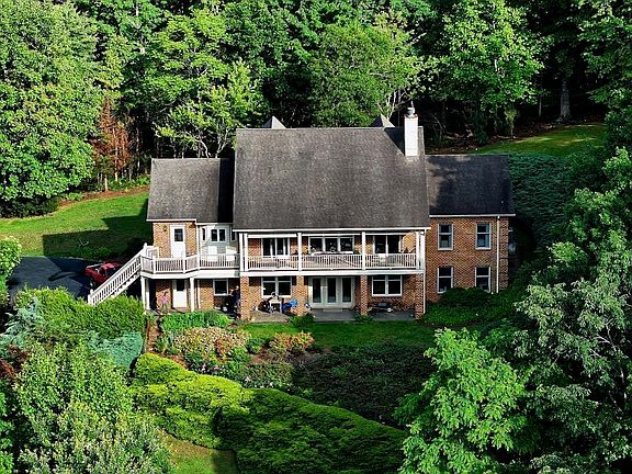 RALEIGH MOUNTAIN TRAIL – Blue Ridge Mountain Views! In the Ivy Valley and privately tucked on 9.85 acres, this gracious and spacious brick residence offers a flexible floor plan with great flow and light throughout. The main first floor rooms feature a living room, dining room, fully equipped kitchen, two-story great room with gas fireplace, primary bedroom suite with bath, second bedroom with bath, mudroom/laundry, and powder room. Panoramic views abound from these rooms and the walk out porch. The second floor has an open library, two en-suite bedrooms along with a bonus room. The walk out lower level has recreation room with masonry fireplace, home office, full and half baths and two car garage. Built-in bookcases and wood floors are just a few of the special features. The property with mature plantings has access to neighborhood trails and is adjacent to a large preservation tract. Conveniently located to Charlottesville and the University of Virginia along with many of the area’s amenities and recreational activities.