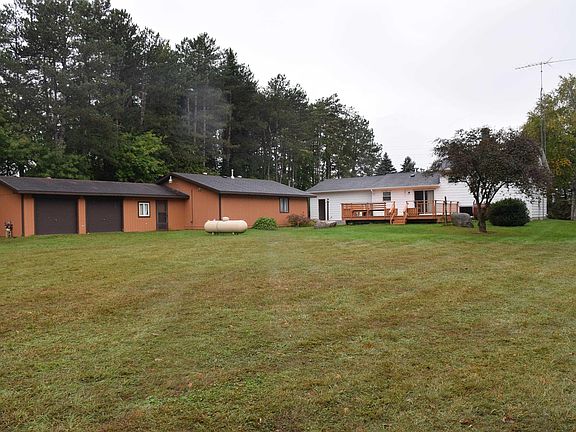 3 bedroom 1.5 bath, 2 car garage, large deck and 28x36 pole barn, with finished heated space (with propane forced air heat) office space, den and rec room, and attached 2 car garage and work shop (16x40).