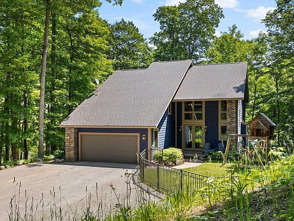 Nestled on a sprawling 19-acre plot of picturesque, rolling wooded acreage, this property in Ellsworth offers a truly enchanting retreat. The residence itself is a masterpiece of architectural design, showcasing exquisite craftsmanship and attention to detail. Every aspect of the home has been meticulously constructed with top-notch materials and luxurious finishes The gourmet kitchen is a chef's dream, boasting state-of-the-art appliances, custom cabinetry, and ample counter space. Home includes central vac, Generac unit, a wine cellar, exercise room, in floor heated lower level and garage. There is a ski hill on the property that original owner carved out for his family to use. The property offers an array of extravagant amenities designed to enhance your lifestyle. One of the most appealing aspects of this property is its proximity to nature's wonders. With Six Mile Lake just a 5-minute drive away, you have the opportunity to partake in various water activities such as boating, fishing, and swimming. Charlevoix is 10 minute drive with shopping and restaurants. Additionally, the magnificent Lake Michigan is a mere 10-minute drive, offering pristine sandy beaches and breathtaking sunsets that will leave you in awe. This property is an absolute gem that provides an idyllic retreat for those seeking a harmonious blend of luxury, privacy and nature.