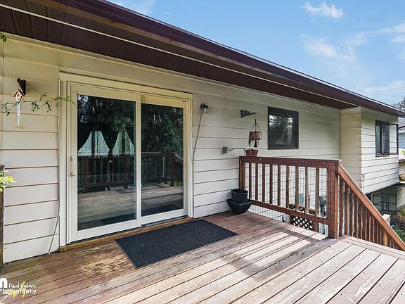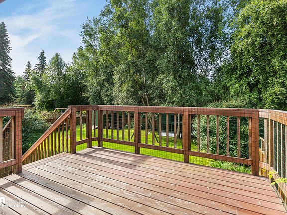 Move-In Ready! Mountain views in desirable College Gate. Fenced backyard, perennial gardens, large deck & kids playhouse w/ swings. Huge family room. New high efficiency Navien boiler & on demand water heater. Dog Lover? Dog door from garage to outside kennel, super convenient! University Lake dog park within walking distance. Trails, Parks, Schools. Just minutes to hospitals, & JBER gates!