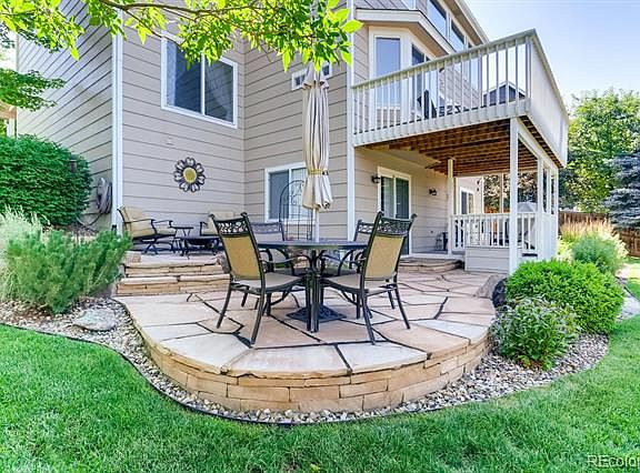 Park like setting on cul de sac w/ mountain views in The Meadows! Large lot w/ mature trees, multi tiered vegetable garden w/ irrigation, flagstone multi-level patio, lower & upper composite decks, & covered patio - absolutely beautiful yard! Updated kitchen has granite counters, eat in area w/ bay windows, wood floors, extended cabinets and counters. All appliances included. Opens into spacious family room w/ vaulted ceiling and fireplace. Formal living & dining rooms. Master Suite has vaulted ceiling, lots of windows & natural light, 5 pc bathroom & walk in closet. Upper level laundry room w/ cabinets & shelving for easy access to bedrooms. Washer and dryer included! Three more bedrooms upstairs (1 is office/non conforming) plus full bathroom w/dual sinks and tile floor. Finished walkout basement features rec room w/built in's, walk in closet & 3/4 bath. Add'l storage space. 3 car garage w/shelving. Covered front porch. Central AC. Low HOA dues. Walk to schools & parks.