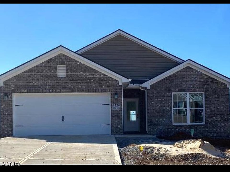 Potential March closing on the Green River, part of the Trend Collection, is an open layout ranch plan with three bedrooms. The kitchen and dining area are open to a the family room. The home's shared living spaces overlook the back yard. The island kitchen offers counter dining space and a storage pantry. The primary bedroom suite is at the front of the home, with a spacious bath, linen closet, and large walk-in closet. This split bedroom ranch design has two additional bedrooms on the other side of the home, with access to the hall bath off a semi-private hallway. A full size utility room completes the plan. Exterior details include a covered entry and gable end roof design.
