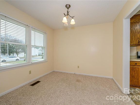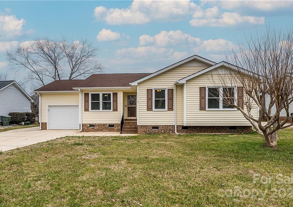 Cute ranch-style home with oversized one car garage and a fenced backyard. Entering the front door you will find the freshly cleaned Berber carpet leading into the living room with a ceiling fan. Open to the eat-in kitchen and breakfast area. All appliances convey including the Stainless steel refrigerator and the stainless steel 5-burner gas range. From the kitchen you can access the oversized 1-car garage with ample room for storage. Heading over to the primary suite, this is a spacious room with access to the deck and a private bath with tile flooring and surround and updated lighting fixture. Laundry room with washer and dryer to convey. Two secondary bedrooms both with large closets and ceiling fans share a hall bath with a tub-shower combination. 2" blinds in the home, large deck with a pergola attached (cool lighting), outbuilding for lawn equipment, and a sweet gazebo with a swing in the fenced back yard. Convenient to downtown Concord, Concord Mills, and Harrisburg.