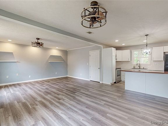 This beautifully updated home offers a seamless open floor plan, perfect for modern living and effortless entertaining. Luxury vinyl plank flooring runs throughout, providing both durability and style, while the crisp white cabinetry in the kitchen adds a fresh and timeless touch. Complete with sleek kitchen appliances, meal prep and gatherings become a joy in this well-designed space. Step outside onto the covered back deck, a charming retreat for relaxing or hosting, all while overlooking the fenced-in yard—ideal for pets, play, and privacy. A home designed for comfort, beauty, and functionality!
