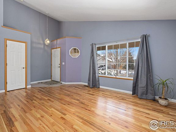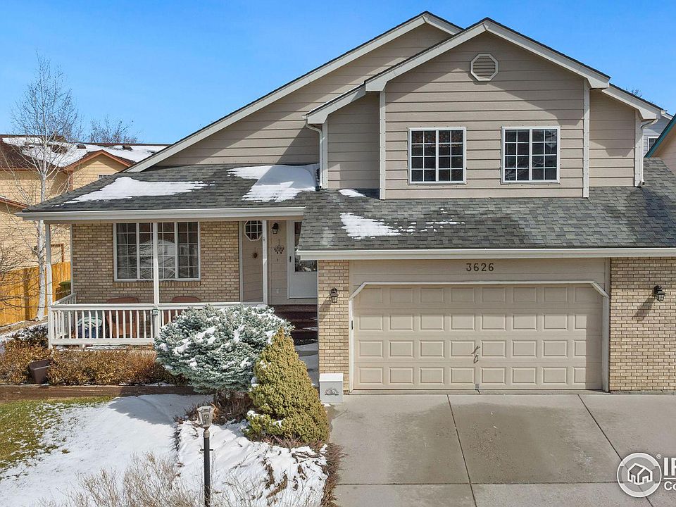 Corner lot residence with tons of new updates throughout! This spacious open-concept home boasts a newer roof, fresh paint throughout, vaulted ceilings, modern wrought iron railings, and beautifully refinished hardwood floors. The upgraded kitchen has new stainless steel appliances, a pantry, and a wraparound counter with bar seating. Gather in the lower level family room around the gas fireplace. The primary bedroom suite includes a walk-in closet and an attached bathroom. Outside, you'll find a huge backyard with a raised deck and new wood fence, perfect for hosting outdoor barbecues or simply relaxing in the Colorado sun. The 2-car attached garage is equipped with an electric vehicle docking outlet and is pre-wired for solar panels as well. Located in a quiet north Loveland neighborhood with easy access to shopping, dining, and entertainment, this property truly has it all. Additional updates include newer energy-efficient furnace and AC, newer washer and dryer, and new toilets in all the bathrooms.