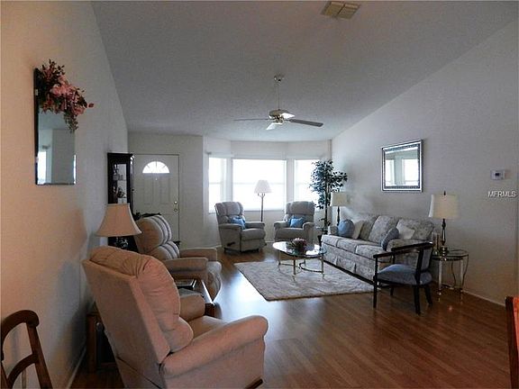 ABSOLUTELY NEAT AS A PIN, MOVE RIGHT IN!! This is a wonderful open floorplan that includes a living room, a large dining area for your favorite dining set, a spacious kitchen with a breakfast nook and a Florida Room on the rear of the home. The main areas of the home have Wood Laminate Flooring and the wet areas are ceramic tile (installed approx. 3 yrs ago) - No Carpet. Kitchen appliances were replaced apprx. 3 yrs ago, A/C system replaced in 2010. Screen patio on front of home with ceramic tile flooring, auto screen door over the garage door and a 2 car garage. Move right in and start enjoying the great amenities this gated Golf community has to offer...clubhouse, pool, tennis, fitness, billiards and so many more activities. Your lawncare is included in the low monthly HOA fee. Great location, apprx. 1 mile to Interstate 4 access and right across the street from shopping, banking and restaurants.
