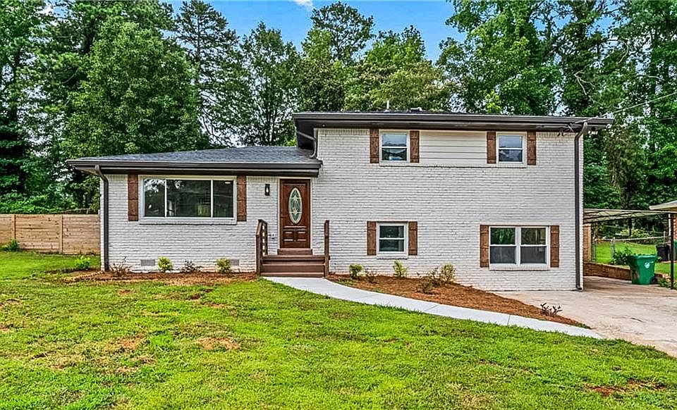 Gorgeous renovation with so much space. All new roof, hvac, furnace, water heater less than a year old, electric and plumbing. Electric car charger in car port. 3 bdrms and 2 bath on upper level and 2 bdrms and 1 bath in lower level with an exterior exit/entrance on lower level. Hardwood floors in upper level and luxury vinyl in lower level. Fenced backyard, ideal for pets. Set your patio table, chairs and fire pit for entertaining on the large cement pad. Luxurious marble like patterns on bathroom tiles. Chic light fixtures throughout. Butcher block countertop on kitchen island under drop down lantern lights. Plenty of natural lighting makes the perfect conditions for greenery throughout the living room and kitchen. 13 minutes to downtown Decatur, full of trendy restaurants and shopping. Less than 27 minutes from most attractions and Hartsfield International Airport, the Atl Zoo, Aquarium and Downtown, less than 35 minutes to Truist Park/Stadium. Virtually staged photos may include chandeliers, light fixtures and furniture that may not come included in house.