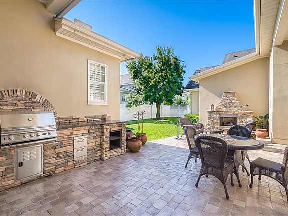 This stately Issa Built home is located with frontage on Blue Jacket Park! Beautifully landscaped and complete with "rocking chair friendly" front porch, you will adore not only the indoor but the outdoor space as well. The subtle color palate inside is accented by exquisite moulding & millwork and plantation shutters, the open kitchen is superb in it's detail and functionality with stainless appliances, granite counter tops and a convenient wine storage unit at one end of the generous service island. Additional square footage was added from the original builder's plans, to the dining, family, and master bedroom (with its double tray ceiling and spa-like en suite), and it shows! A quaint breakfast nook overlooks your rear brock paver courtyard complete with a gas grill and fireplace. Above the 3 car garage is a large bonus room great for card games, home theater, play room or visiting guests! Put this one at the very top of your list!