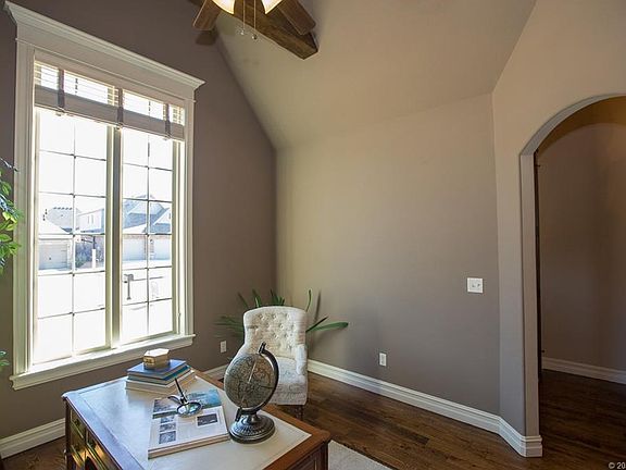 Like new home on cul-de-sac. Vaulted beamed ceilings, hdwoods, Granite Kitchen w/soft close drawers. Office, Formal Dining. 3 Bd down. Bed, Bath, game & flex rooms up. Custom blinds thruout. Full brick storage bldg & storm shelter. Neighborhood pool.