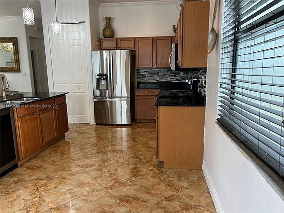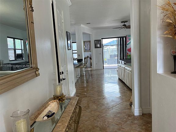 Corner home, 2 story open concept with a 1 car garage. This property features 3 bedrooms, 2 bathrooms, laminate wood flooring on the 2nd floor and 1/2 bathroom on the 1st floor. The first floor is totally open so you can entertain, gather with your family and enjoy there company. It has stainless steel appliances, tile throughout plus 5" crown moldings. The backyard is fenced and paved throughout so you can enjoy your BBQ's. Community features pool, cabana house, children play area, gated community, 24 hr. security patrol... EXTRA room (Garage converted to a bedroom) Come and call this your home!