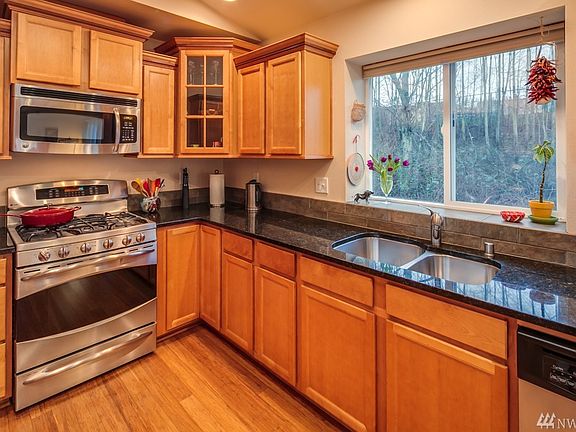 This meticulously maintained home is in better than new condition! Upgrades include beautiful wood and tile floors, granite, undermount sink, stainless steel appliances and a open floor plan with vaulted ceilings in the main living area. Lower level features spacious family room 3/4 bath and a bedroom. Front of house has territorial and Canadian Mountain views, while the back features a private yard with both a deck and a covered patio. With in walking distance of Northern Heights and Squalicum.