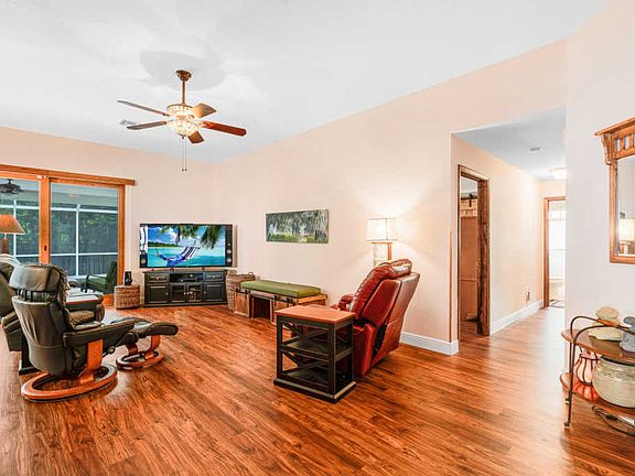Beautiful 3 bedroom / 2 bath Pool home in Woods Walk. Low HOA. Turfed fenced in yard. Screened enclosed heated salt water pool. Property backs to the preserve- very private. Roof 2006, New AC Dec 2020, Water heater 2017, Accordian shutters, impact front door. Waterproof laminate flooring throughout. Wood cabinets and granite in the kitchen. Furniture negotiable. Custom barn door in master bedroom. Cameras stay, buyer needs to get service for them.
