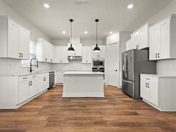 This two-story, 4 bed, 3.5 bath home offers the ideal layout with an open floor plan featuring a chef-ready kitchen, adjacent dining room and a large living room. The living room is located at the heart of the home offering a great space for gathering with friends and family. Large windows along the back of the home offer views of the covered outdoor living area. The inviting wraparound front porch is perfect for relaxing after a long day. Homeowners will appreciate the spacious master bedroom, large enough to accommodate your entire bedroom suite, as well as the beautifully designed bathroom featuring a dual-sink vanity, a soaker tub and a shower. Additionally, a huge walk-in closet provides enough room to store your entire wardrobe.