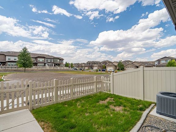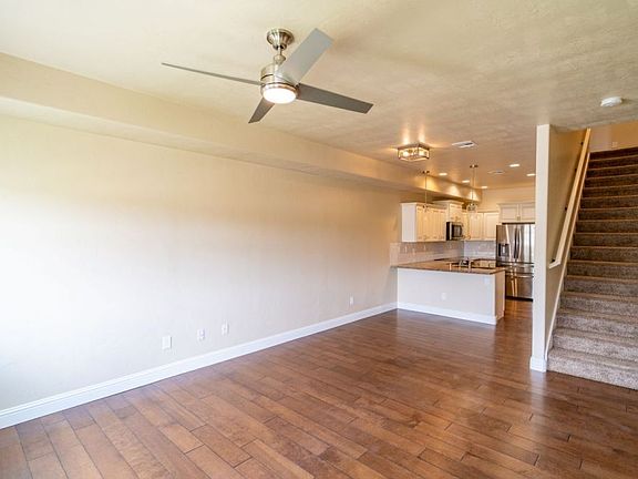 Energy efficient, luxury townhome in Elko, NV at Autumn Colors Subdivision. 2 bed ; 2.5 bath ; 1 car garage. Antique White cabinets, granite countertops, hardwood, tile, engineered sound canceling privacy walls, front landscaping and fencing, Microwave and dishwasher are new. New light fixtures throughout. Front view of park area. Move in ready. Fridge included.