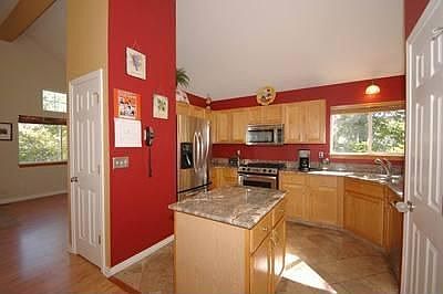 Upgraded and updated! Kitchen has slab granite countertops, travertine tile floor, brushed nickel hardware, stainless steel appliances, gas range. Laminate wood floors on main & lower levels. Spacious family room w/gas fireplace, formal living room w/cathedral ceiling. Newer 90% efficient furnace. Central A/C, radon mitigation system, double pane vinyl windows. Full unfinished daylight basement w/rough-in bath. Close to park, shopping and amenities. Private corner lot w/mature landscaping.