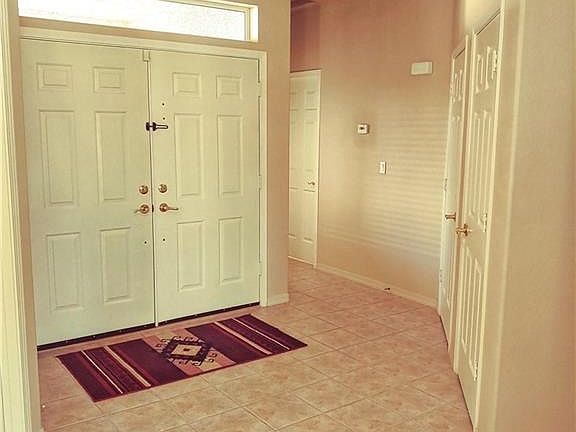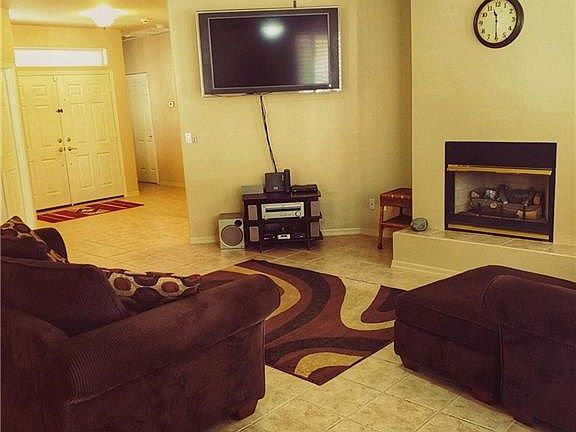 Beautiful open Living/Dining/Kitchen area. Kitchen features a breakfast bar with Corian Countertops. Large living room with fireplace. From living room, Slider with shutters grants access to backyard featuring covered patio and easy desert landscaping. Primary bedroom has separate door granting access to backyard covered patio. Primary bedroom bath has dual sinks, separate shower & tub. 3 car garage 2 car-21x21 and 1 car 11x23. Enter from garage into laundry room with wash room sink. A MUST SEE!