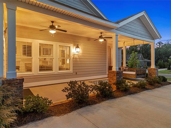 Beautiful craftsman style cottage with an open floorplan. 1x4 trim around all windows and cased openings. Professionally designed and landscaped yards. 30 year dimensional roofing. Home comes with an attached double garage and side porch. Prime golf course lot with back patio. Enclosed garage and golf garage is heated and cooled. Amenities include access to the Marriott's 2 outdoor pools plus 1 indoor pool, dry saunas, exercise room, 8 clay tennis courts and 4 pickleball courts! Complimentary play on the short course and unlimited range balls at Grand National Robert Trent Jones Golf Trail. Home has plantation shutters, CAT 6 Internet, security camera, smart thermostats, dbl ovens, 5 burner fs LG with griddle cooktop, beverage frig, LG refrigerator, LG microwave, upscale lighting package. Bed swing on porch. Lots of upgrades and a must see!
