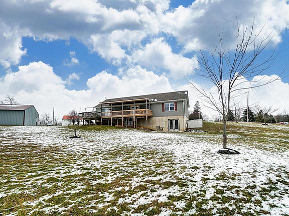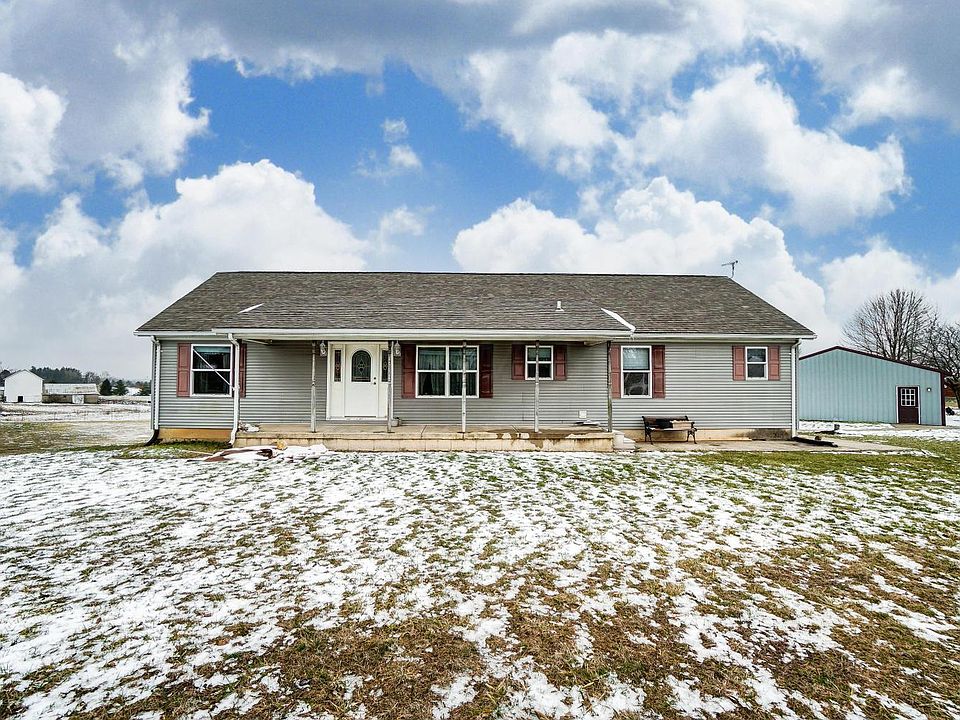 Spacious 3 bedroom, 2 bathroom Mechanicsburg ranch that is situated on just over 3 acres of land! 40 x 30 pole barn with electric. Owners suite with walk in closet, deluxe bathroom with shower and tub. Large kitchen with center island and eating space. 1st floor laundry room & pantry. Living room features brand new entry doors that overlook the back yard. 2 additional bedrooms and updated full bathroom! Unfinished walk out lower level that features a bathroom rough in, pellet stove and the beginning stages of finishing. Relax on the large, rear covered deck and enjoy the country views. 15x13 shed with electric and fire pit! Many recent updates such as- New furnace and A/C- 2019, New Roof- 2019, New Soffit- 2019, New entry doors on walkout LL & back of home- 2019, H/W tank- 2016.