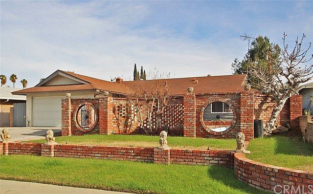 Welcome to this unique single-story home in an established Riverside neighborhood. The private front yard features extensive brick flooring, a brick wall with wagon wheel spoke accents, water garden with cascading feature and a circular brick area perfect for your fire ring. The formal entryway offers a custom built-in shelving and display piece. Light & bright kitchen has a large dining area, breakfast bar and ample space for storage and prep work. In the dining area you have plenty of wall space for artwork, mirrors and your China cabinet. The huge living room features an impressive rustic-looking fireplace with custom floor-to-ceiling wall of brick and stone. The living room opens to another large room surrounded by windows that overlook the backyard. Make this area your game room, office, gym, hobby room, etc. In the master suite you will find mirrored sliding closet doors, a view over the front yard and access to the ensuite bathroom with a long vanity. This home has direct garage access and built-in storage. The backyard is home to several mature citrus trees like grapefruit, orange and lemon. Enjoy the healthy lawn, brick patio and concrete patio perfect for BBQs. One side yard has a dog run and the other side yard offers covered space for storing garden tools, firewood, etc. Take a closer look at this one-of-a-kind home today!