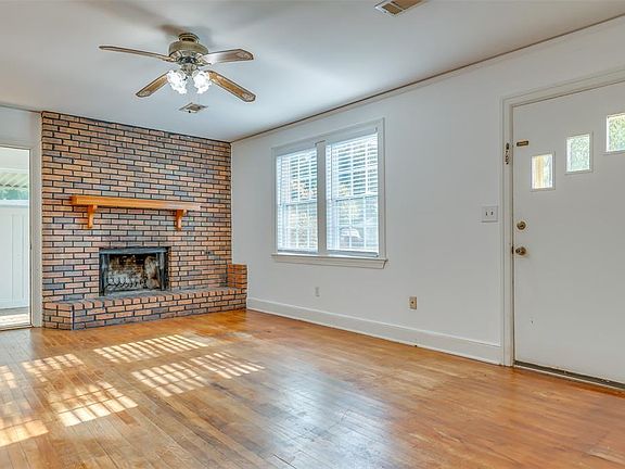 Large corner lot! Charming 3 bedroom/1 bathroom home features original hardwood floors, new paint, new windows, large brick fireplace with beautiful mantle and separate dining area.
