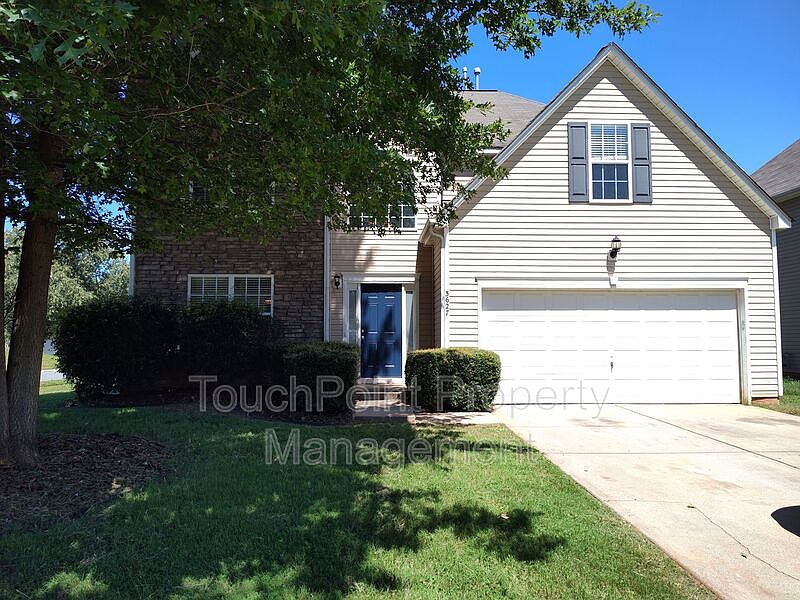 This pristine, Corner lot, 2 story, 4 bedroom, 2.5 bath home features; a 2 car garage, open floor plan, laminated wood flooring throughout. The large eat-In kitchen includes a kitchen island and in addition the home includes a separate dining room. Primary bedroom is complete with a tray ceiling, ensuite bathroom with dual sink vanity, separate garden tub and walk-in closet. Washer and Dryer included. Close to I-77. One pet up to 25lbs. will be considered and is conditional with a non-refundable pet fee, no aggressive breeds. Pet fees will be determined by the outcome of pet screening. Security deposit will be determined via the outcome of background screening.