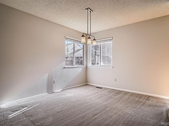 Check out this great two-story in Highlands Ranch! This 3-bedroom, 3-bath home has approximately 1,900 sq ft of finished living space. The dining/kitchen/family room floor plan provides the perfect setting for gatherings and entertaining. The kitchen features slab granite countertops, tiled backsplash, pull shelving and two pantries, as well as an eat-in area, and all appliances included. Upstairs is two bedrooms, a full hallway bathroom, and primary bedroom with upgraded ensuite bath. Super convenient laundry on the upper level. Also upstairs is a loft that can be used as a work from home office or comfortable family room.