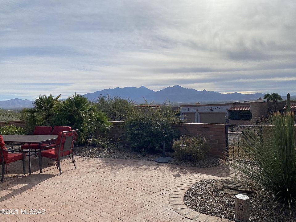 This house has it all! The front patio has fruit bearing trees to enjoy. You walk through the front to the foyer into a gorgeous open kitchen that looks out onto the living area, which then looks out onto the mountains. The view is breathtaking and so visible with huge windows and a wrap around porch so that it can be enjoyed during all seasons. This remodeled floor plan also comes with a dining room to the side of the kitchen with plantation shutters. On the other side of the house you will find two bedrooms and bathrooms where the showers have just been beautifully updated. The primary closet goes right through to the laundry room for easy access. This home is move in ready for anyone who can appreciate the spectacular Santa Ritas and desert landscape Green Valley has to offer!