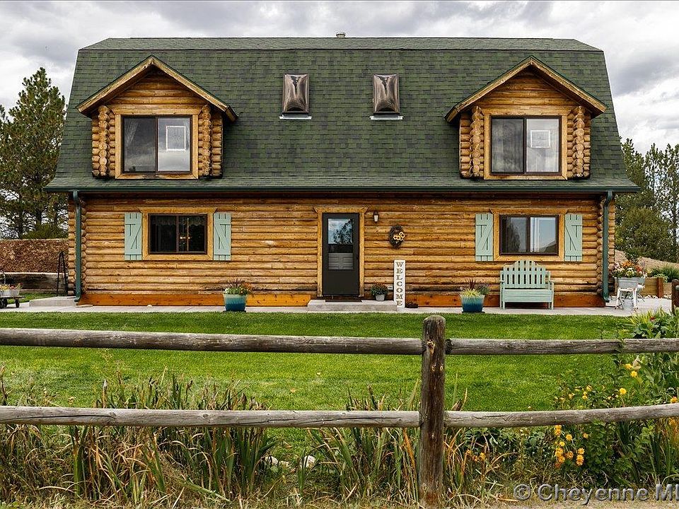 Experience the ultimate in rustic luxury with this meticulously maintained, custom-built log cabin in Cheyenne, Wyoming. Sitting on 10 acres of land, with an additional 8 acre option, this stunning property boasts exceptional craftsmanship and top-quality materials. You will appreciate the care and attention to detail these original owners have provided. Step inside and you'll immediately notice the vaulted ceilings and gorgeous exposed post and beams. The open floor plan seamlessly connects the living, dining, and kitchen areas. The wood-burning stove with a beautiful Real River Rock backdrop creates a warm and inviting atmosphere, perfect for entertaining guests or relaxing with loved ones. With 4 spacious bedrooms, you'll have plenty of room to spread out and unwind. Modern amenities ensure your comfort, while maintaining the charming rustic feel of the cabin. The extended heated shop, is an impressive feature of this property. With its own separate workspace, it's ideal for storing tools, equipment, and vehicles, as well as tackling various projects. The second wood-burning stove means you can work year-round. You will also find a unique loft above the shop, perfect for use as a studio, workshop, or cozy retreat, as well as a 5th bedroom. With 1000 trees on the property, that serve as a windbreak, you'll be surrounded by natural beauty. The multiple outbuildings, including a She Shed offer enough storage for even the largest of families. Don't forget to bring your animals to enjoy the barn, chicken coop, and and loafing shed. This one-of-a-kind Swedish Cope Log Cabin is a peaceful retreat from city life, perfect for outdoors enthusiasts or anyone seeking a unique home on acreage. Don't miss out on the opportunity to own this incredible and unique property. Driving Directions: RD 136 to Sky Valley Rd, continue straight to Sky Ridge (former address of 1575 RD 136 can be found on maps).