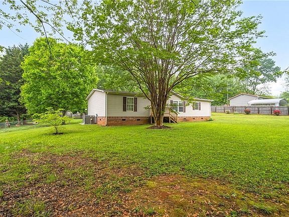 Welcome to this beautifully maintained 3-bedroom, 2-bath home nestled on the outskirts of Madison, NC. This inviting property offers a perfect blend of comfort, functionality, & style—ideal for everyday living and entertaining. Step into a spacious living room filled with warmth and character, featuring a cozy wood-burning fireplace—perfect for chilly evenings and relaxing. The generously sized primary suite offers a huge closet space and a bathroom with luxurious soaking tub, separate shower, & dual vanity. The heart of the home is the spacious kitchen, complete with ample counter space & cabinetry. French doors open from the dining area to a large back deck, creating a seamless indoor-outdoor flow that's ideal for morning coffee or summer gatherings. Outside, the backyard provides a peaceful retreat with plenty of room to relax or play. **NEW roof, HVAC, duct work and well pump. Storage building does not convey HIGHEST AND BEST 7/9 by 5 PM!